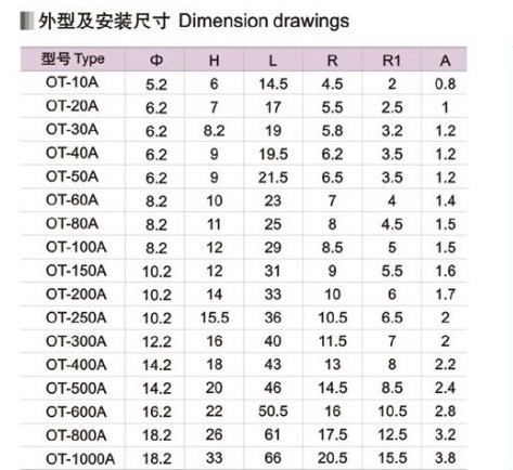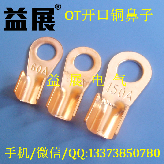 OT銅開口鼻系列產品采用優質紫銅板沖壓,其應用領域廣泛,如變壓器,穩壓器,及各種發電機,通訊電纜等等!適用于配電裝置中導線連接。