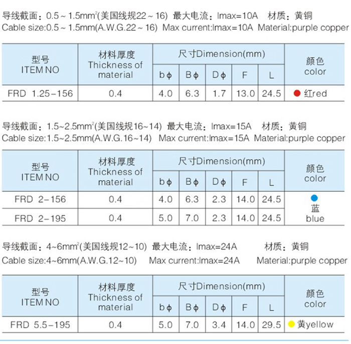 FRD子彈型母預絕緣端頭 Home您現在的位置:網站首頁 >> 產品中心 >> 冷壓端子