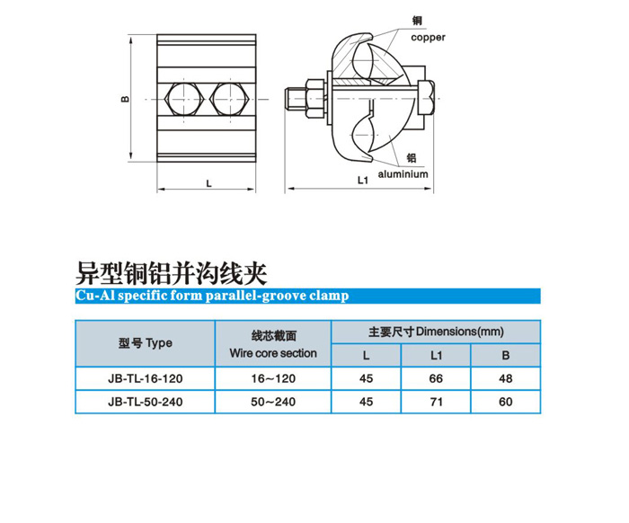JB-TL銅鋁異型并購線夾 Home您現在的位置:網站首頁 >> 產品中心 >> 金具線夾系列
